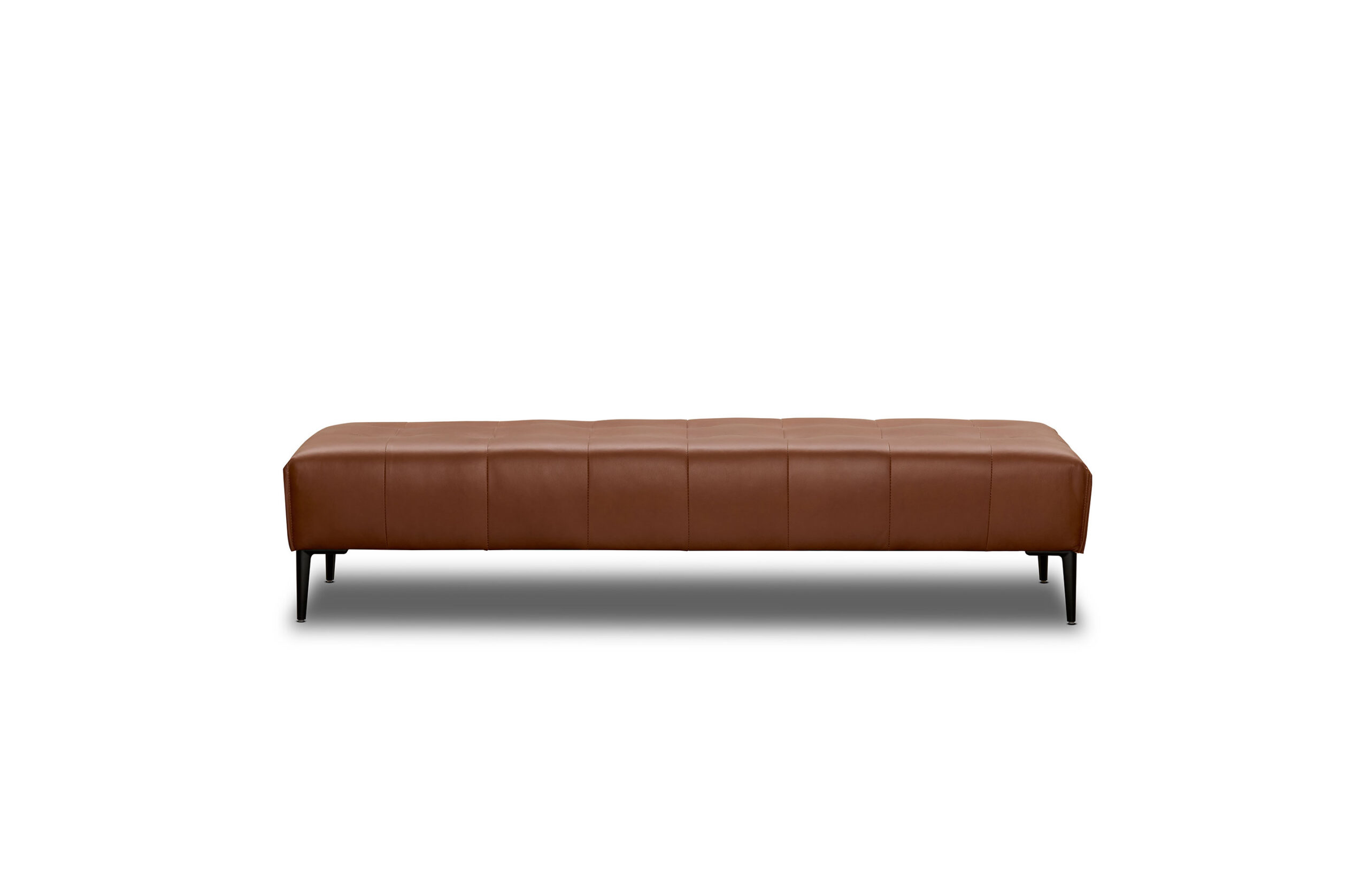 Handcrafted in Melbourne, the Ray Ottoman features a dimensional quilted top, refined metal legs, and a solid hardwood frame. Upholstered in NSW Casablanca; col cognac lux, a buttery soft semi aniline leather. Made in Melbourne.