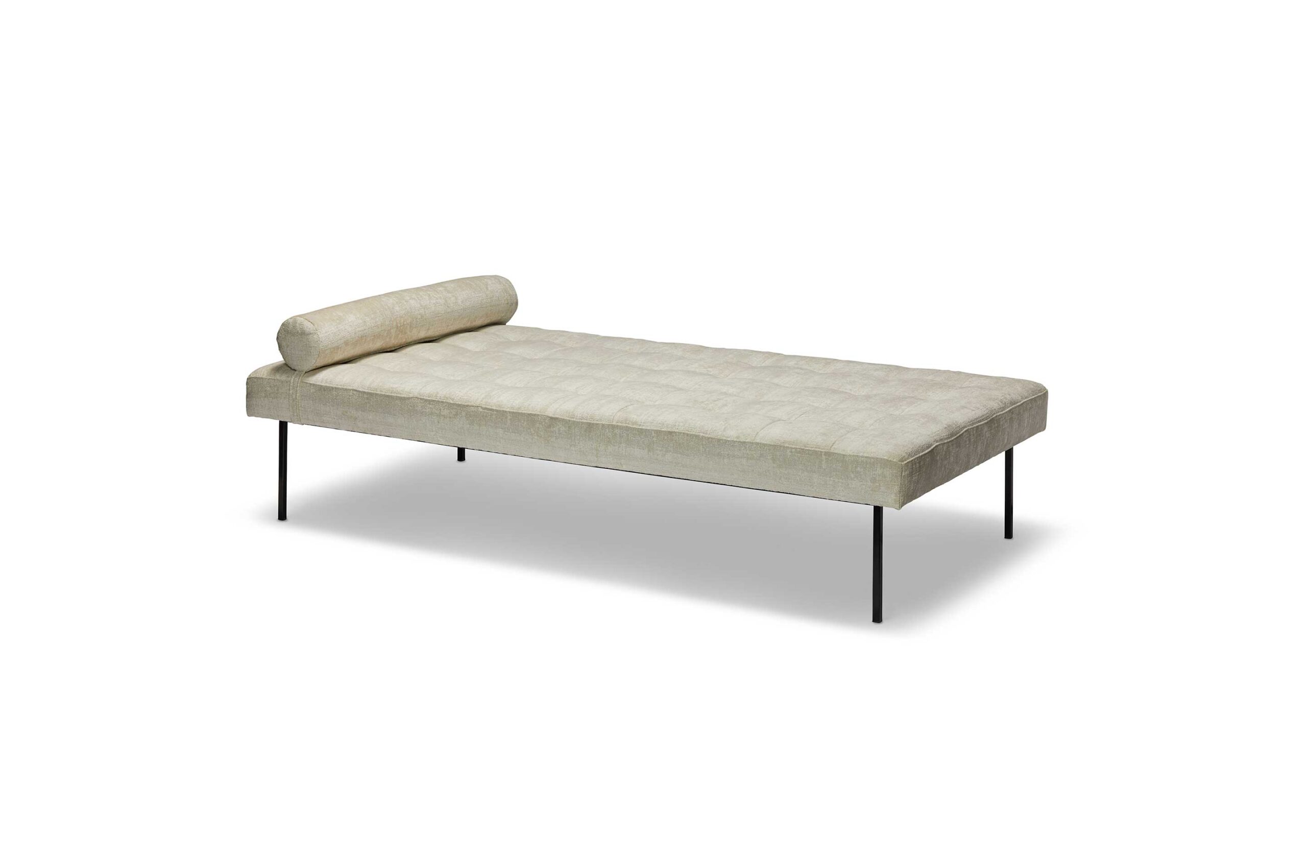 Pictured: Cila Daybed in Zepel Hug, Cream. Metal Frame, powder-coated Black. Made in Melbourne.