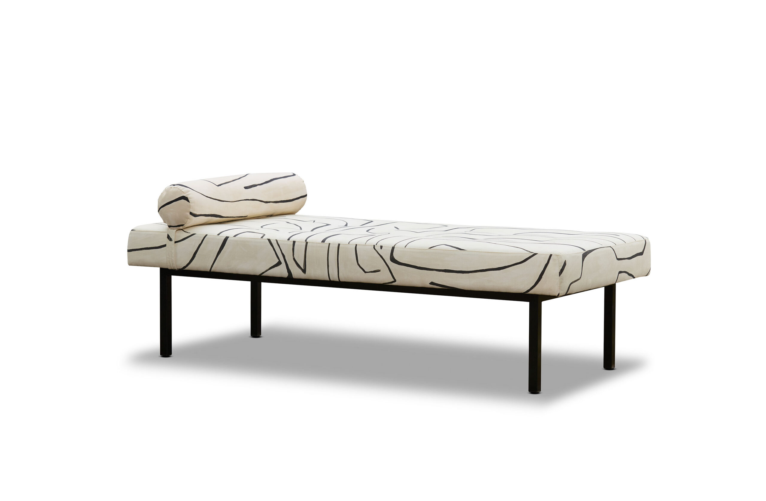 Pictured: Cila Daybed in Kelly Wearstler Graffito col; linen/onyx. Metal Frame, powder-coated Black. Made in Melbourne.