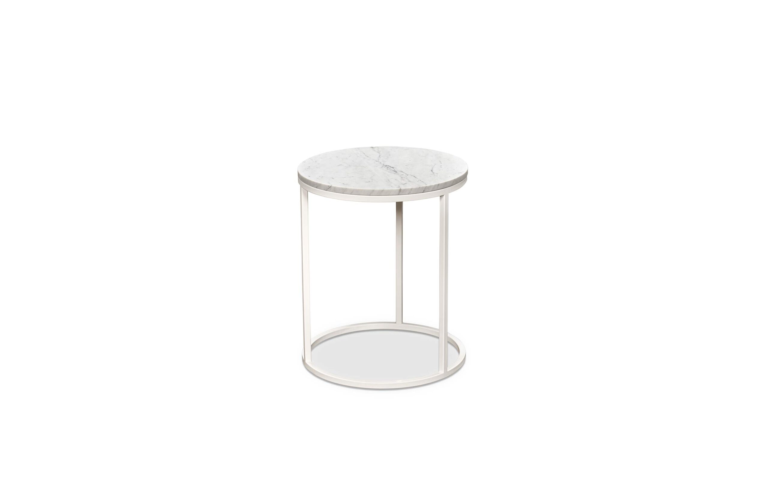 Pictured: Frame Side Table 500D Carrara Marble Top. Powder-coated frame, white. Made in Melbourne.
