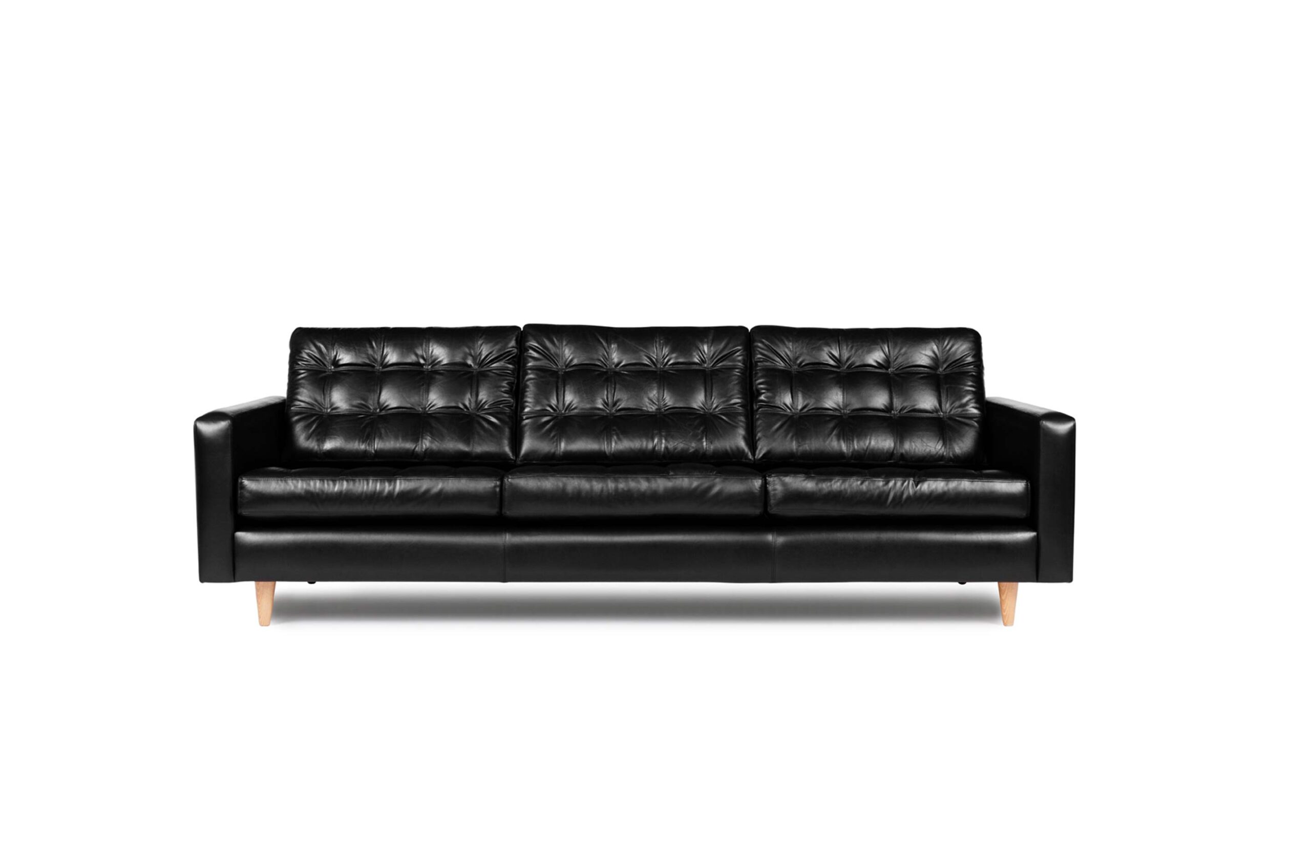 Pictured: Manhattan 4S Sofa in Tasman Sorrento, Black. Victorian Ash Leg, Woca. Made in Melbourne.