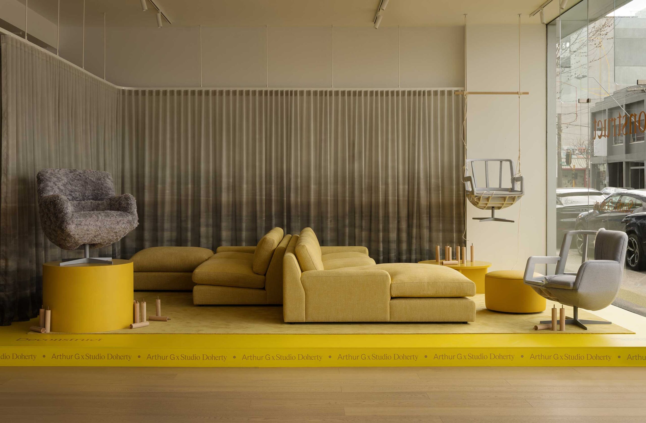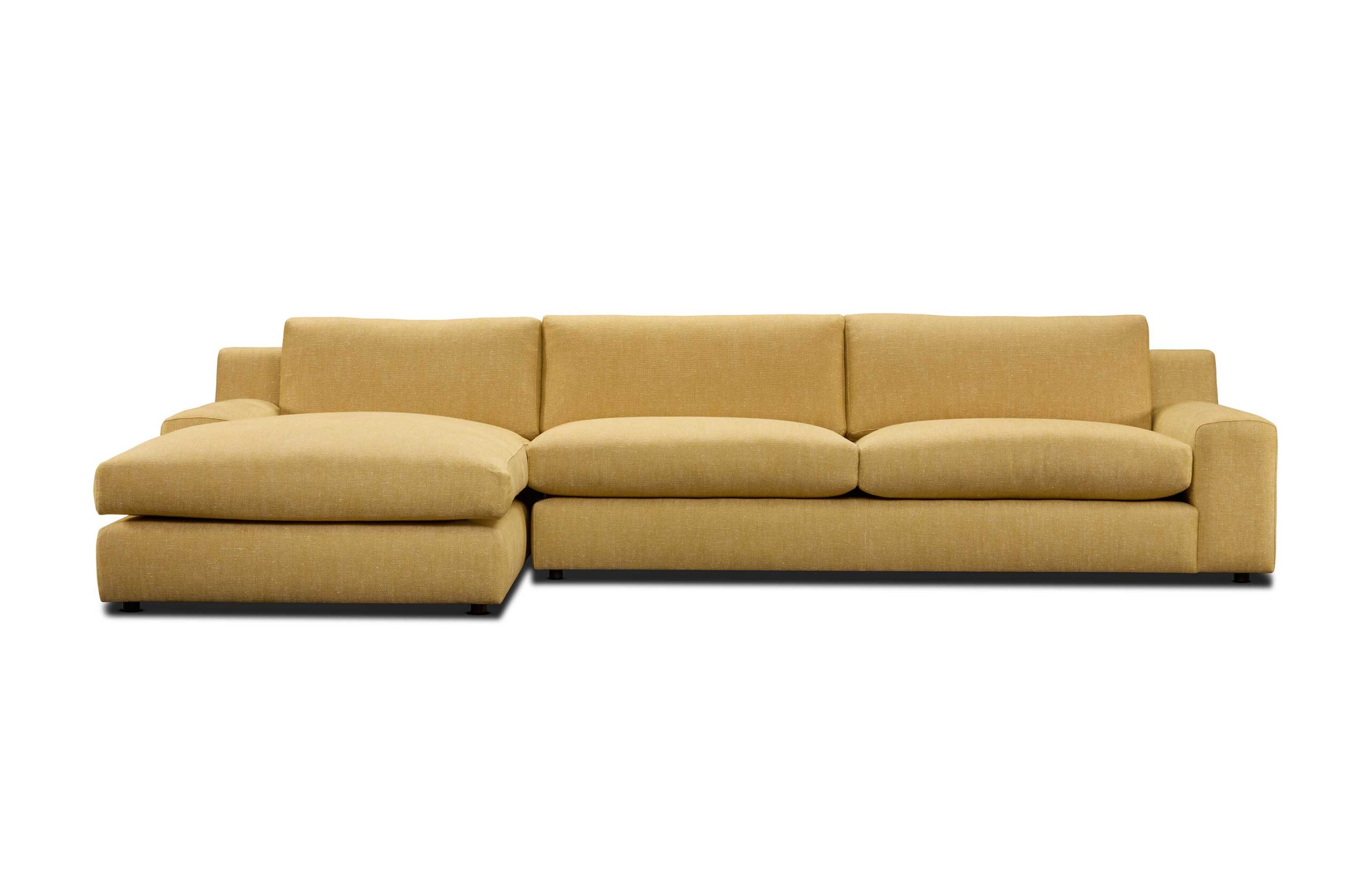 Pictured: Miles Chaise 3.5S LHF in Kirkby Hampstead, Mustard. Hidden Floating Leg. Made in Melbourne.