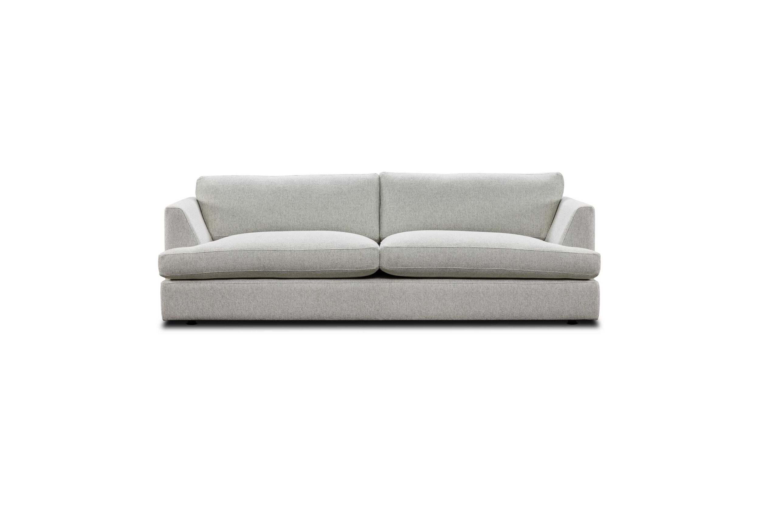 Pictured: Niva Sofa 3.5S in Mokum, Palermo, Stone. Floating leg. Made in Melbourne.