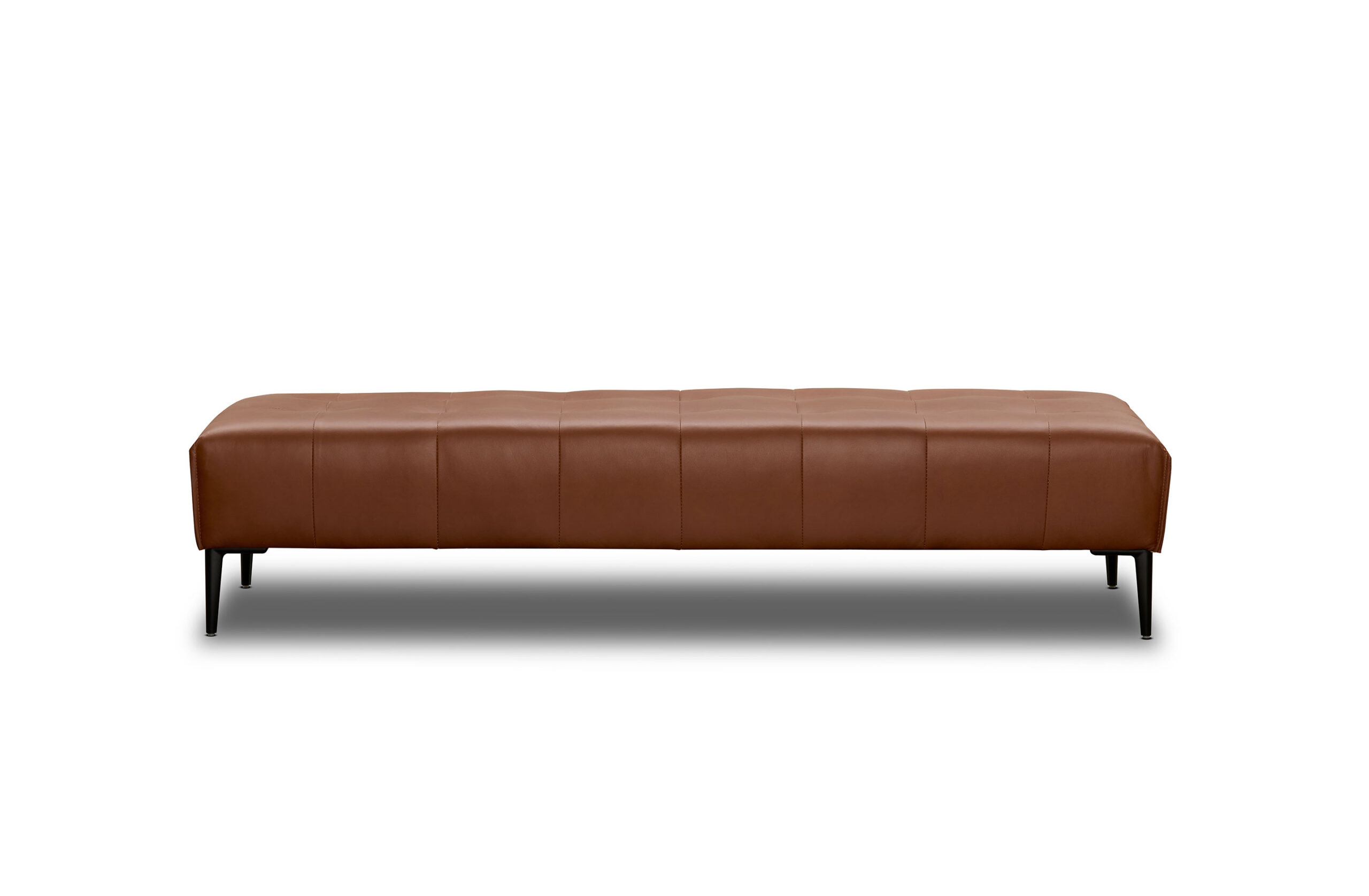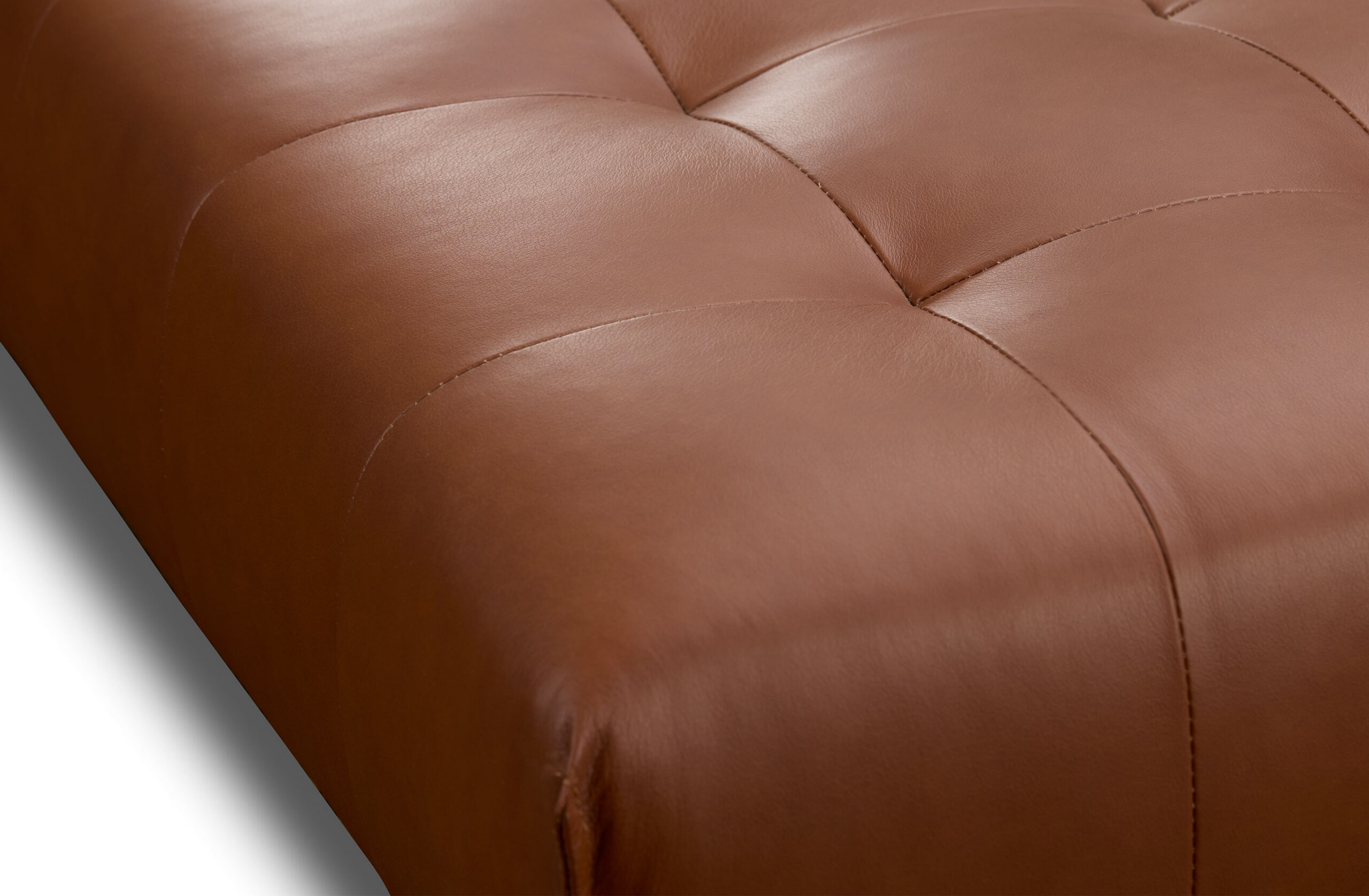 Handcrafted in Melbourne, the Ray Ottoman features a dimensional quilted top, refined metal legs, and a solid hardwood frame. Upholstered in NSW Casablanca; col cognac lux, a buttery soft semi aniline leather. Made in Melbourne.